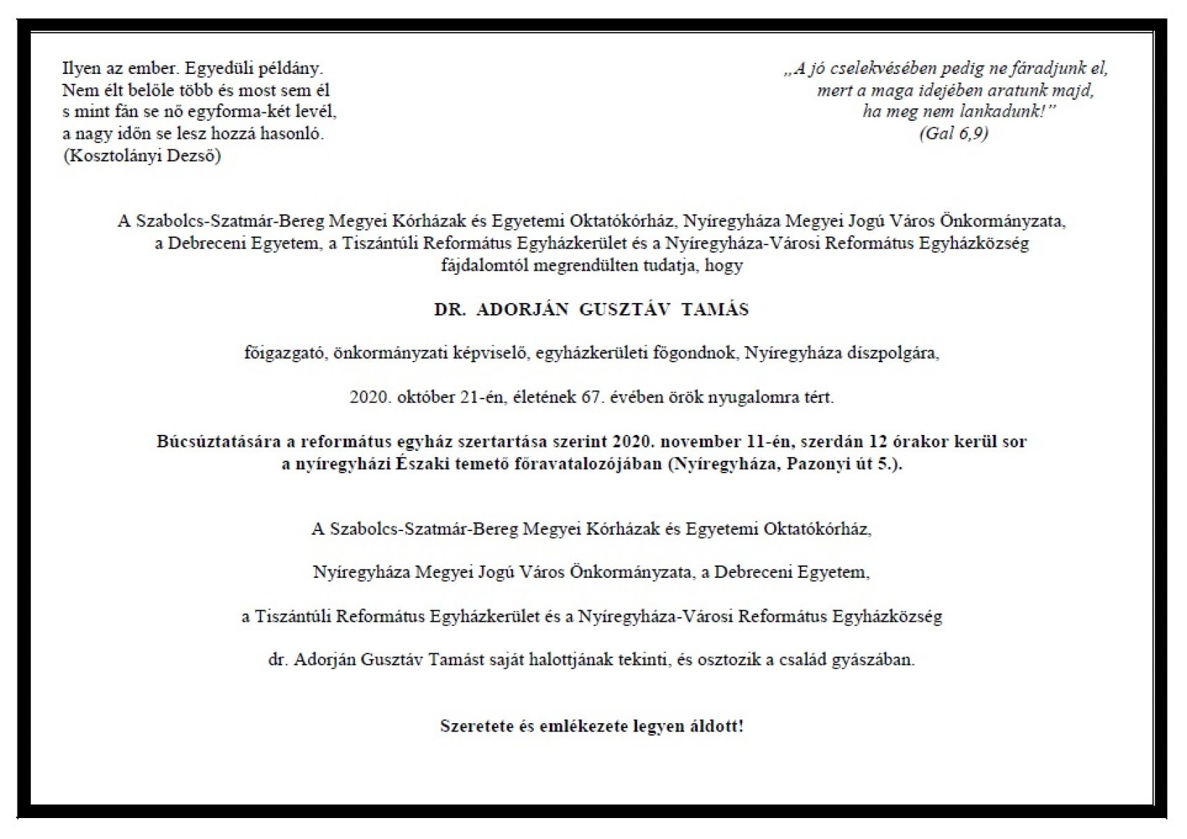 Dr. Adorján Gusztáv gyászjelentése